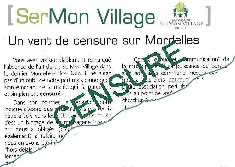 - 7ème et dernier article de SerMon Village dans le bulletin municipal : censure définitive. (Mordelles Info: un vent de censure sur Mordelles)
